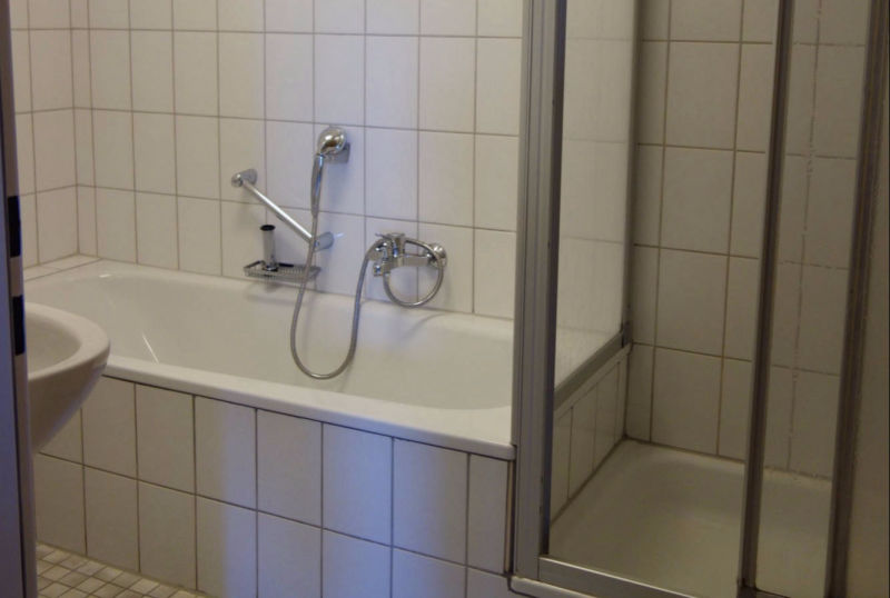 - Im Badezimmer gibt es sowohl Dusche als auch Badewanne