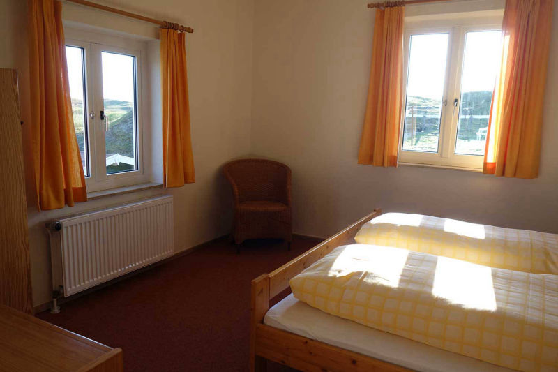 Die Wohnung Kunterbunt ist eine gemütliche Wohnung für die ganze Familie. Unsere Wohnung 2 ist im Erdgeschoss gelegen und Sie können aus den Fenstern den Blick auf die idyllischen Baltrumer Dünen genießen. Die Wohnung verfügt über ein Schlafzimmer mit Doppelbett und einem grossen Kleiderschrank sowie ein Schlafzimmer mit Etagenbett, ein gemütliches, modernes Wohnzimmer (TV-Flachbildschirm), eine integrierte, voll eingerichtete Küche und ein Badezimmer. Mit einer Wohnfläche von ca 64qm ist sie für 4 Personen ausgelegt. Ein Zustellbett im Kinderzimmer und ein Schlafsofa im Wohnzimmer bieten drei zusätzliche Schlafplätze. Der Wohn- und Essbereich ist mit einem Holzfußboden und einem Esstisch für 6 Personen ausgestattert.
